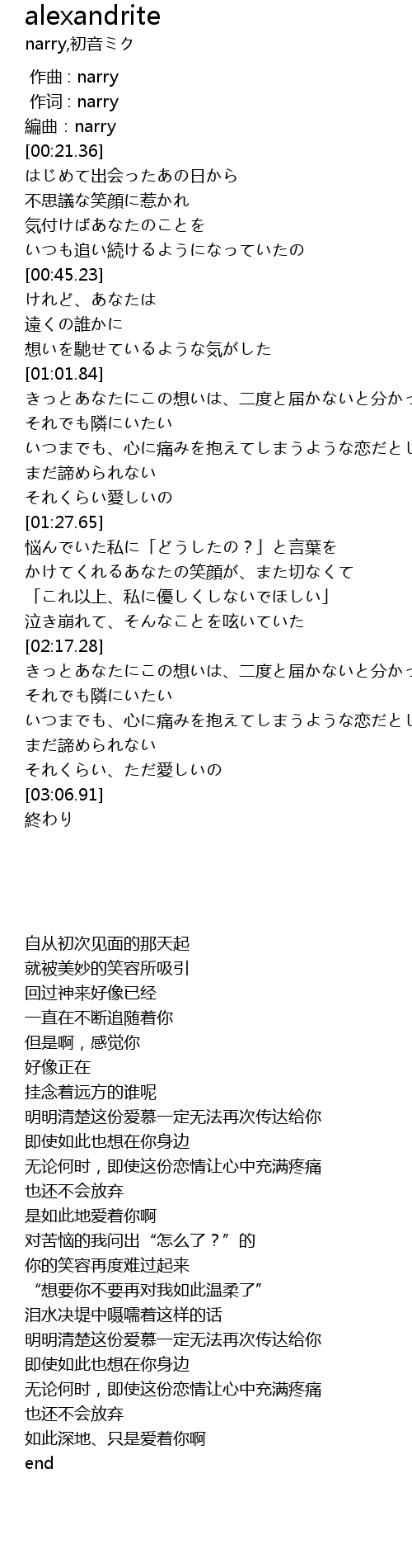 | [02:32.97] | 明明清楚这份爱慕一定无法再次传达给你 |