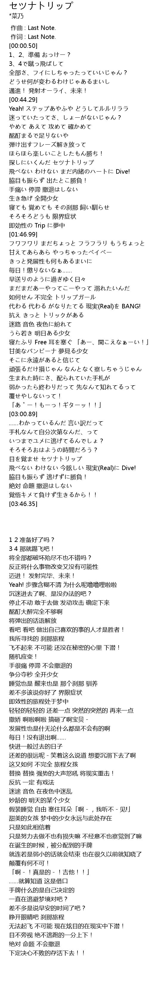 | [03:26.29] | 目を覚ませ セツナトリップ |