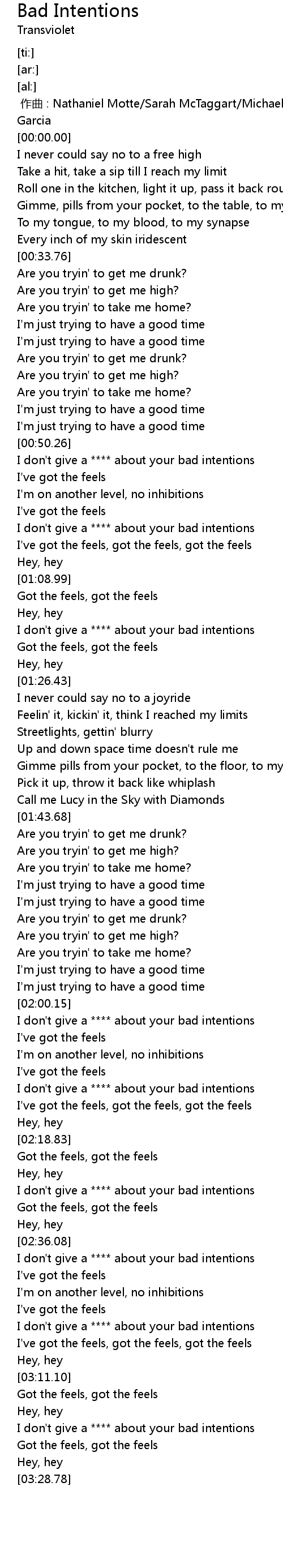 | [00:51.79] | I don't give a **** about your bad intentions |