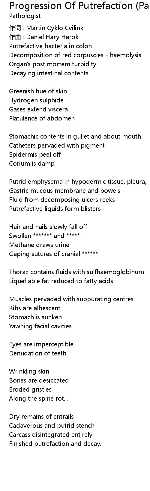 | 歌曲 | Progression Of Putrefaction (Part 2) |