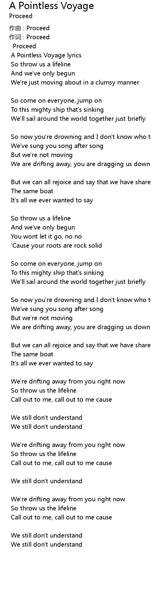 | A Pointless Voyage lyrics | |