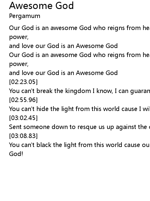 Our God is an awesome God who reigns from heaven above with wisdom, power, |