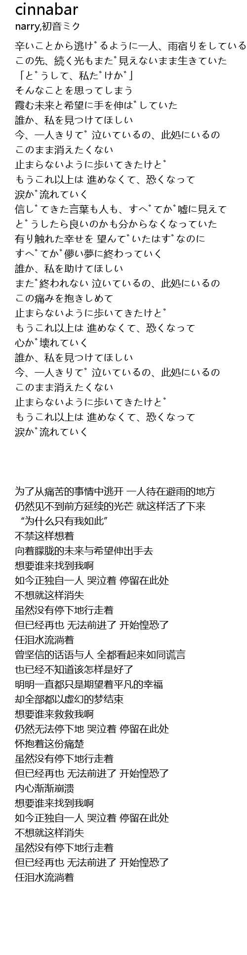 | [00:53.855] | 今、一人きりで 泣いているの、此処にいるの |