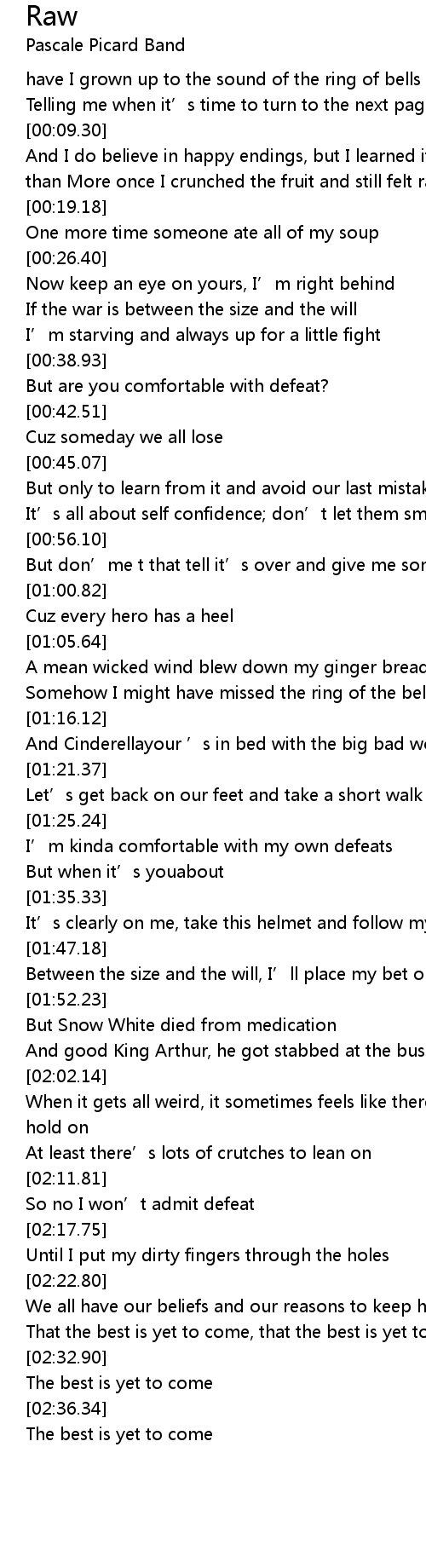 | [02:37.34] | The best is yet to come |