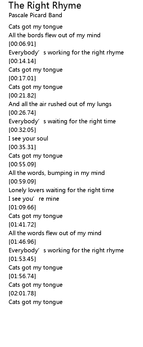 | [00:09.15] | Everybody’s working for the right rhyme |