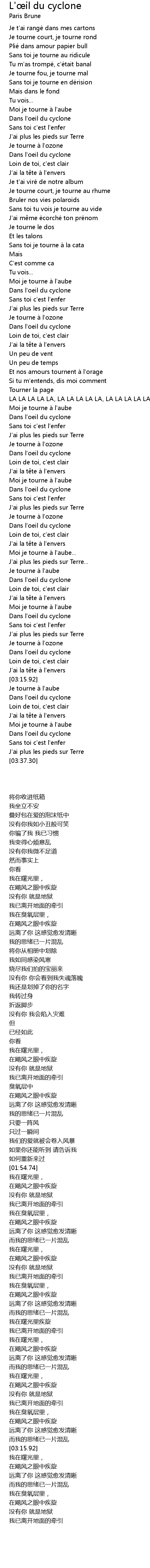 | [00:55.86] | Je tourne court, je tourne au rhume |