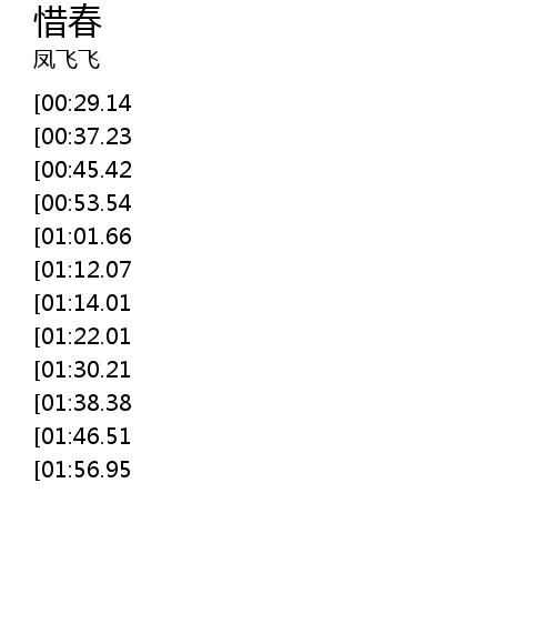 | [02:29.16][00:53.54] | 唤得春归 寒冬远离 惜春莫待春去 |