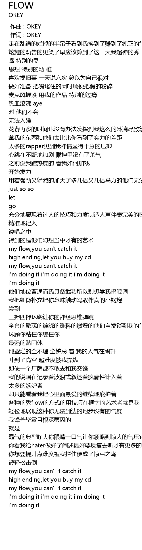 | [01:20.80] | quán tào de fán mào de chán rào de nán liào de rán bào de tā men zì fā tán dào wǒ de flow |