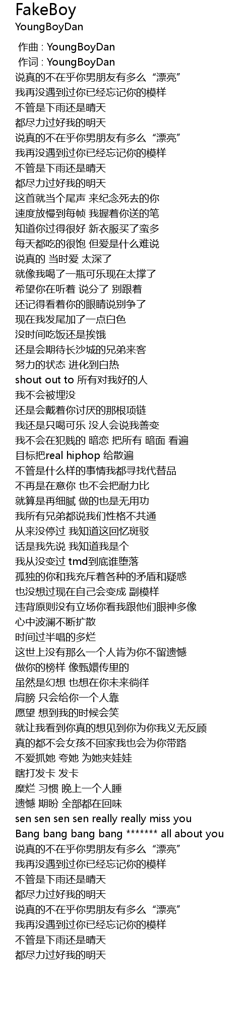 | [00:01.000] | zuò cí : YoungBoyDan |