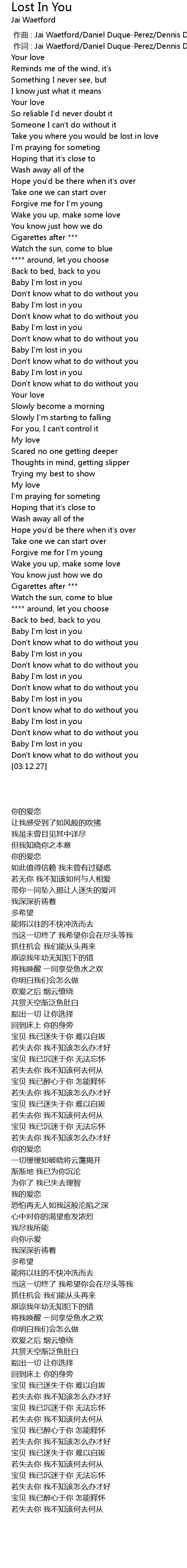 | [02:15.83] | Baby I'm lost in you |