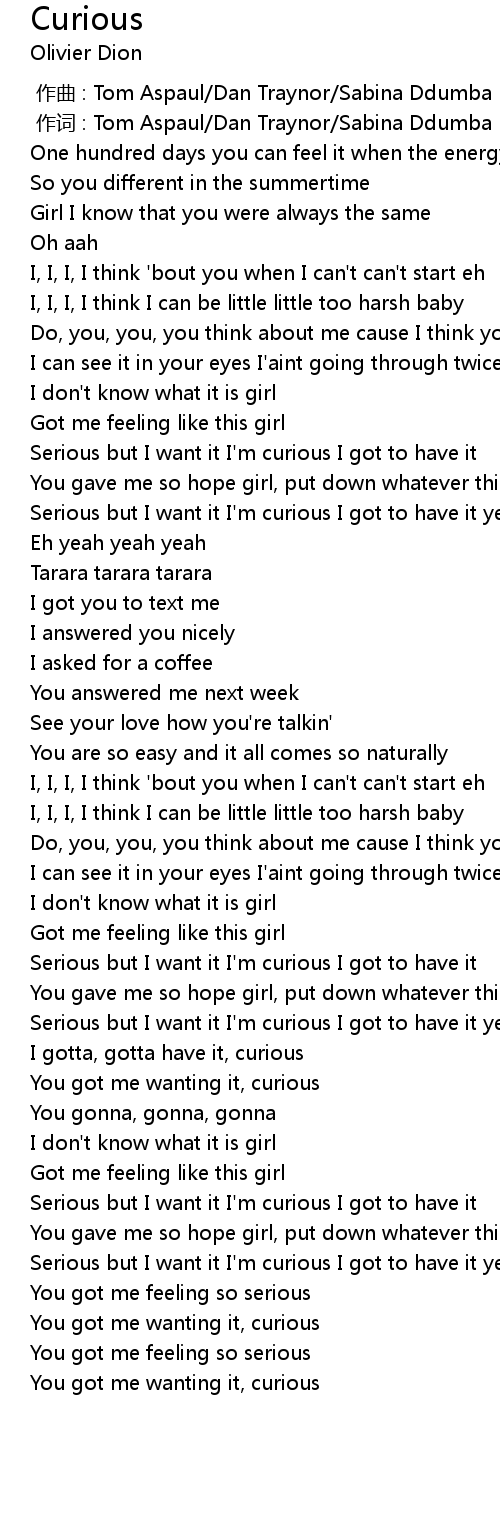 | [02:21.29] | You got me wanting it, curious |