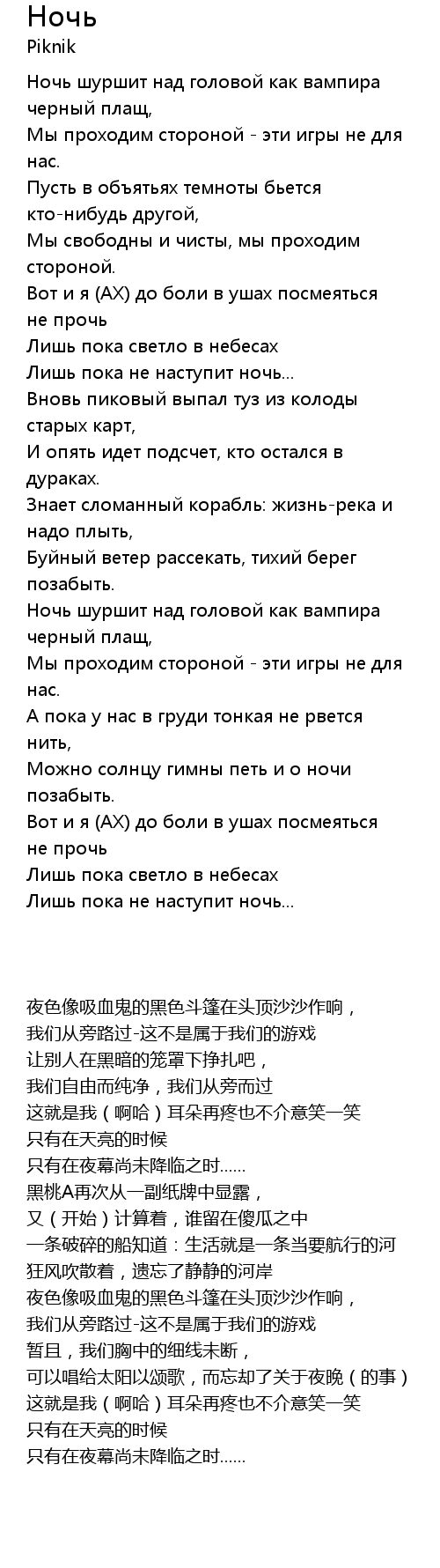 | 歌曲 | Ночь |