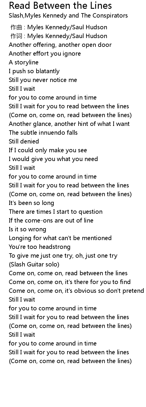 | [01:47.800] | (Come on, come on, read between the lines) |