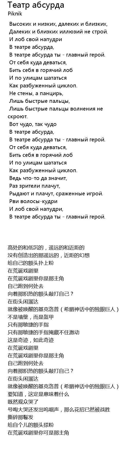 | 歌曲 | Театр абсурда |