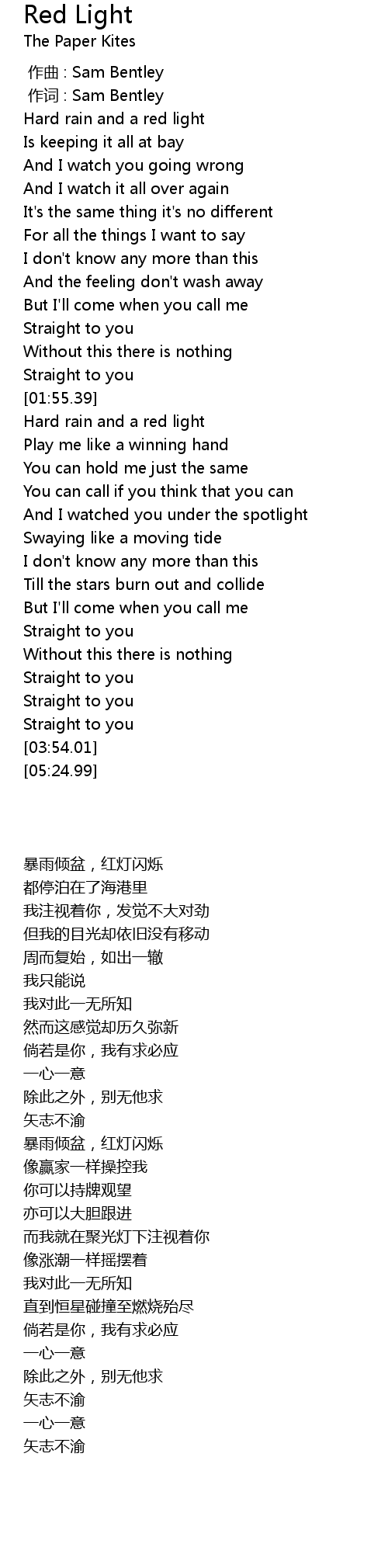 | [00:40.38] | Hard rain and a red light |