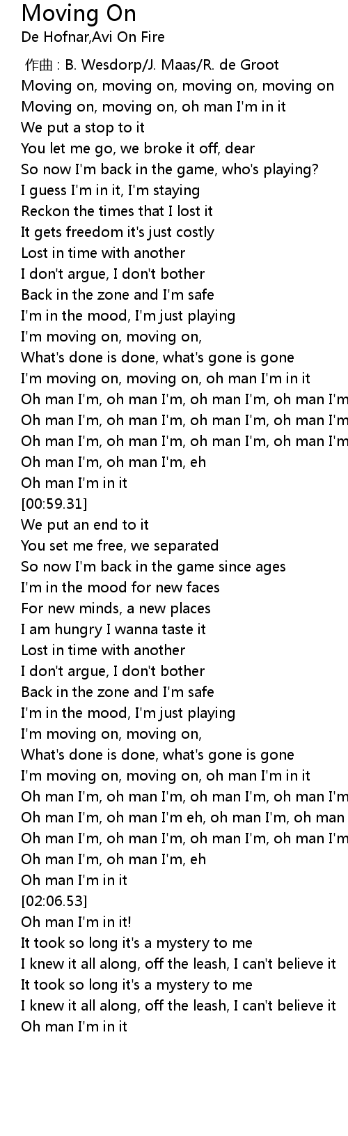 | [00:37.60] | I'm moving on, moving on, oh man I'm in it |