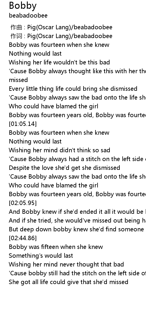 | [00:51.42] | Bobby was fourteen years old, Bobby was fourteen years old |