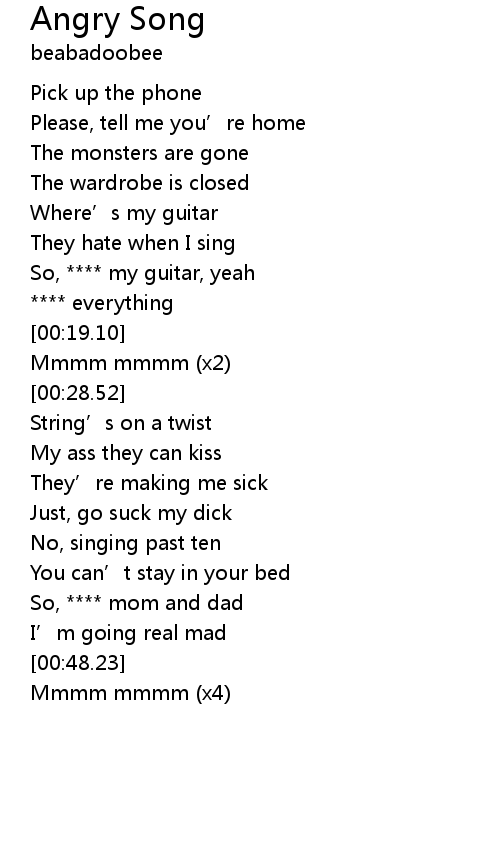 | [00:43.10] | So, **** mom and dad |