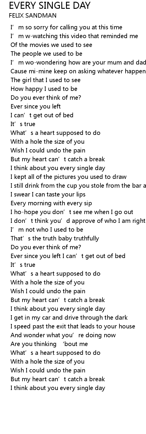 | [01:44.417] | Ever since you left I can' t get out of bed |