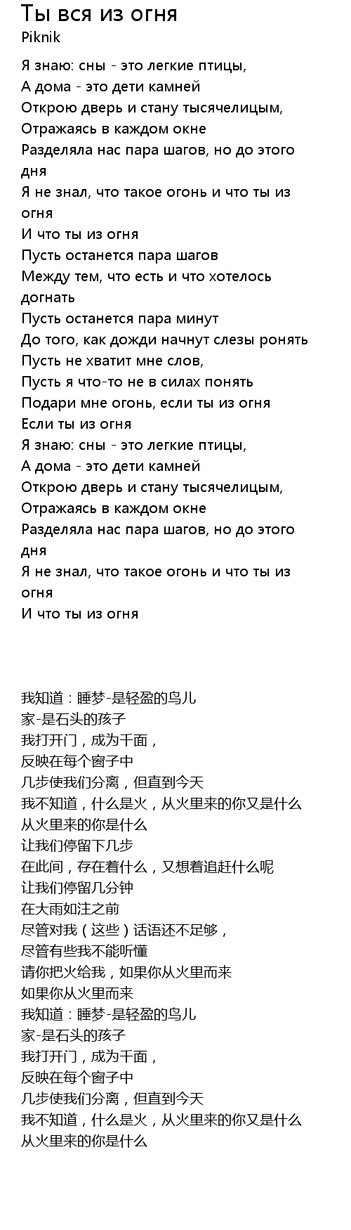 | [03:32.717] | Я не знал, что такое огонь и что ты из огня |