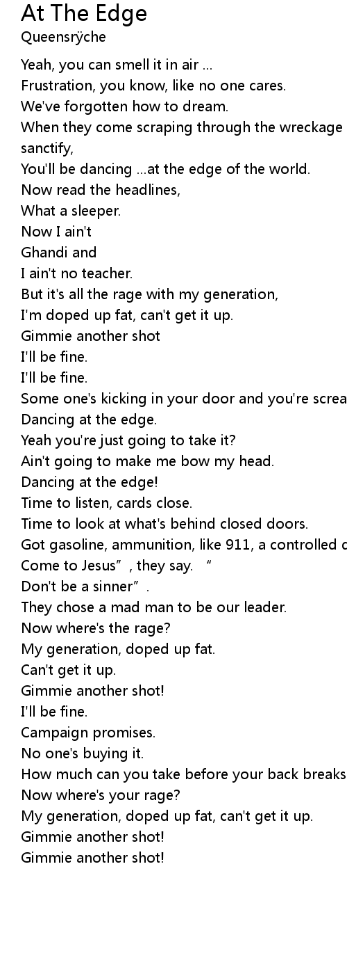 | Some one' s kicking in your door and you' re screaming for the more. | |
