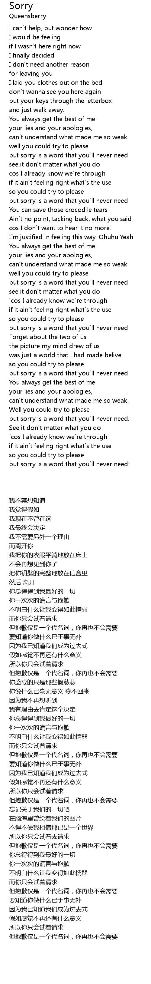 | [01:30.100] | but sorry is a word that you´ll never need |