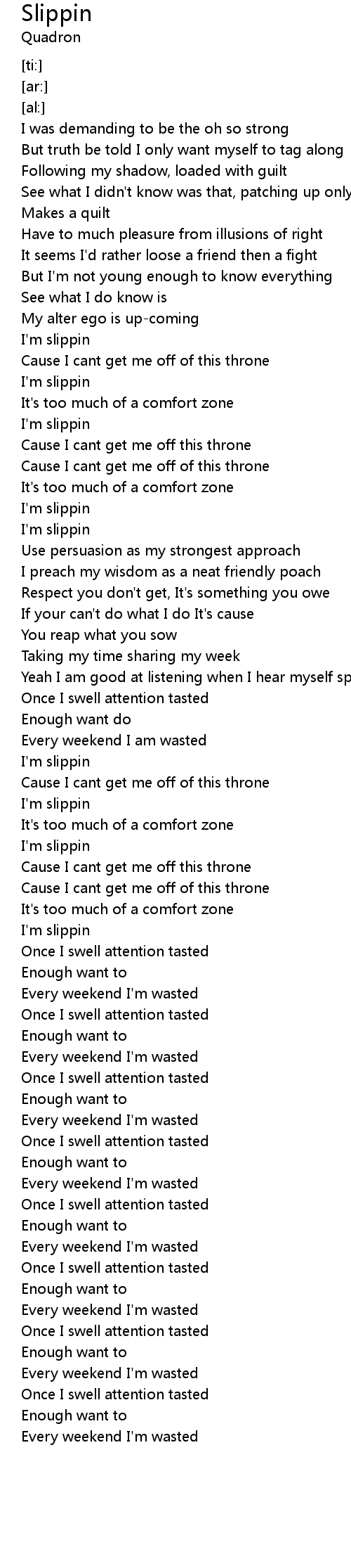 | [00:56.22] | I'm slippin |