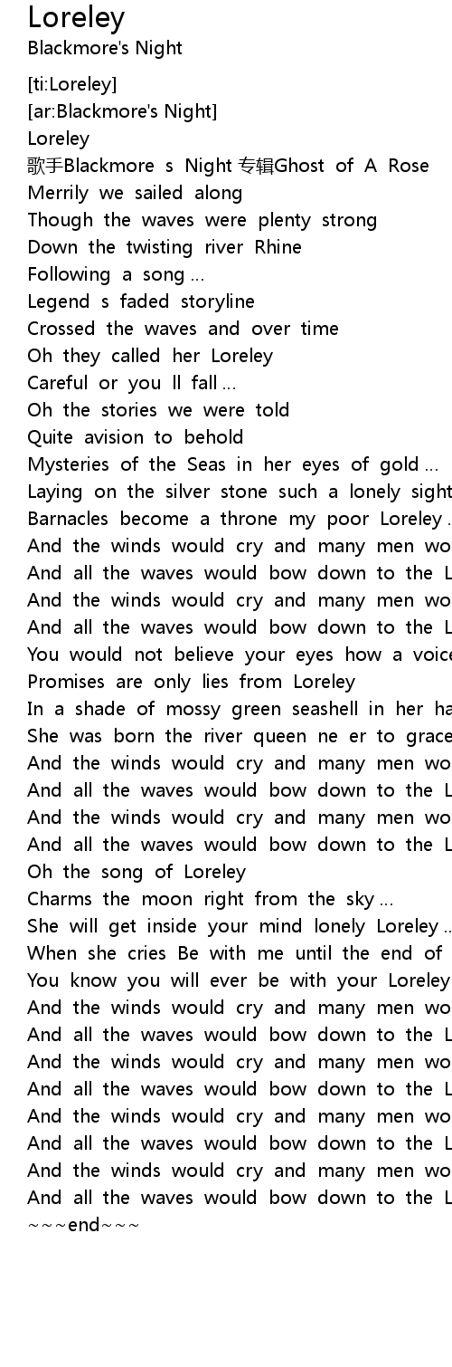 | [02:33.26] | She will get inside your mind lonely Loreley |