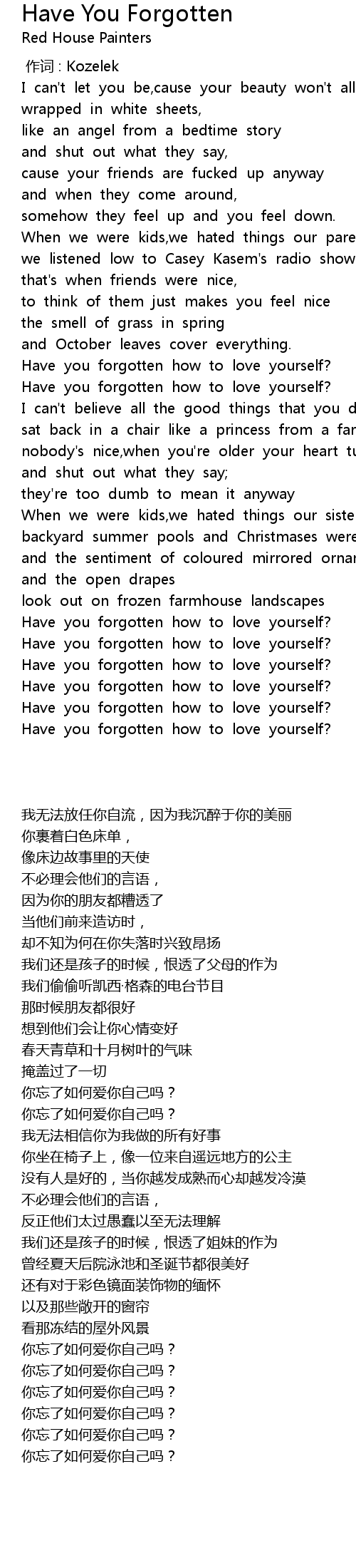 | [05:13.73] | 你忘了如何爱你自己吗? |