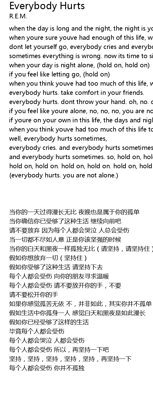 everybody hurts. dont throw your hand. oh, no. dont throw your hand. |
