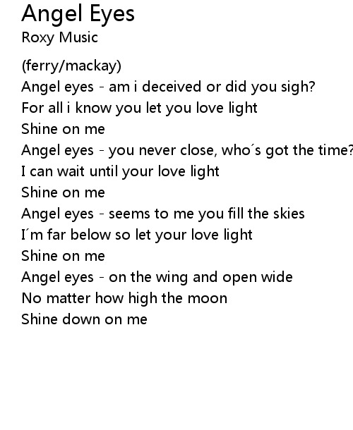| Angel eyes - seems to me you fill the skies | |
