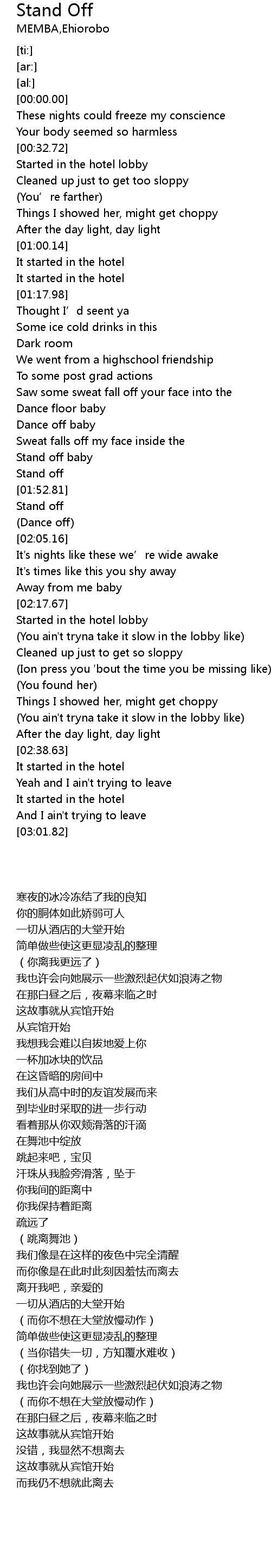 | [01:51.66] | Stand off |