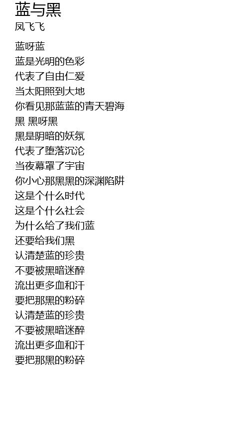 | 歌曲 | 蓝与黑 |
