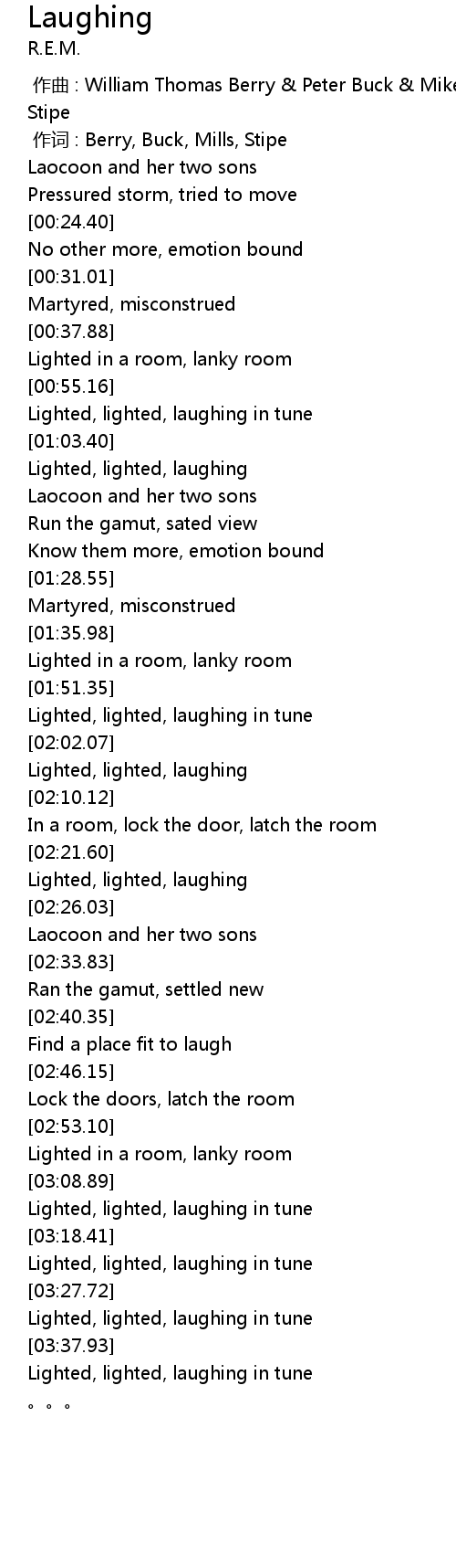 | [02:03.32] | Lighted, lighted, laughing |