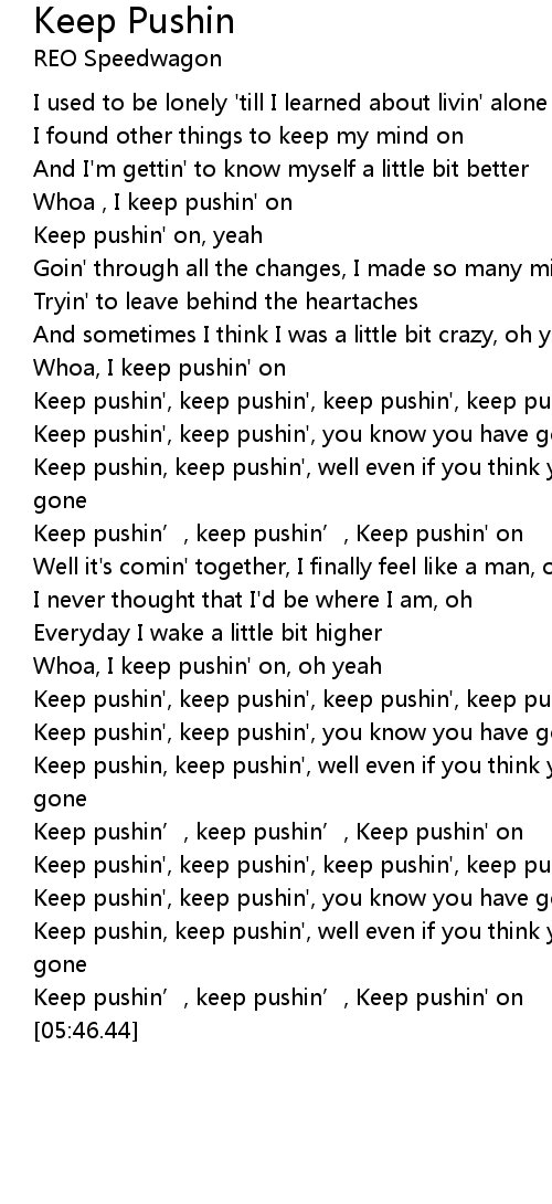| [04:20.87] | Keep pushin’, keep pushin’, Keep pushin' on |