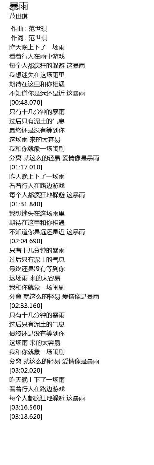 | [02:25.490] | 分离 就这么的轻易 爱情像是暴雨 |