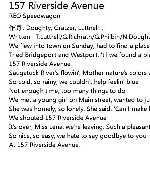 | 歌曲 | 157 Riverside Avenue |