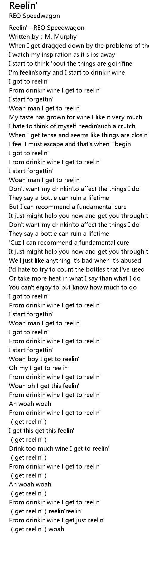 | [00:00.10] | Reelin' - REO Speedwagon |