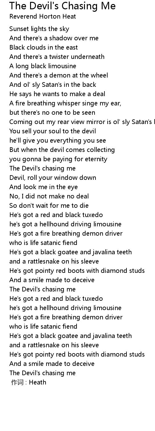 | 歌曲 | The Devil's Chasing Me |