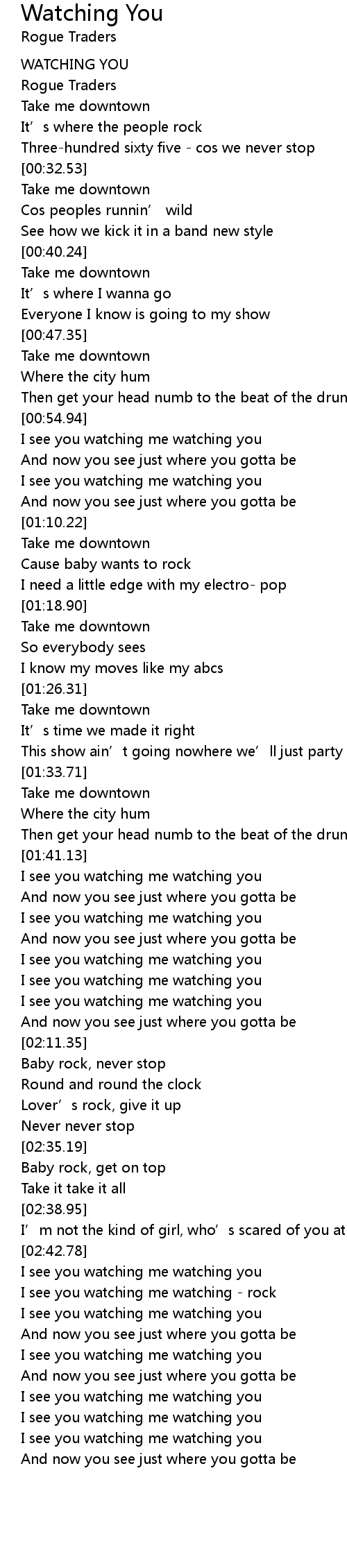 | [02:04.02] | I see you watching me watching you |