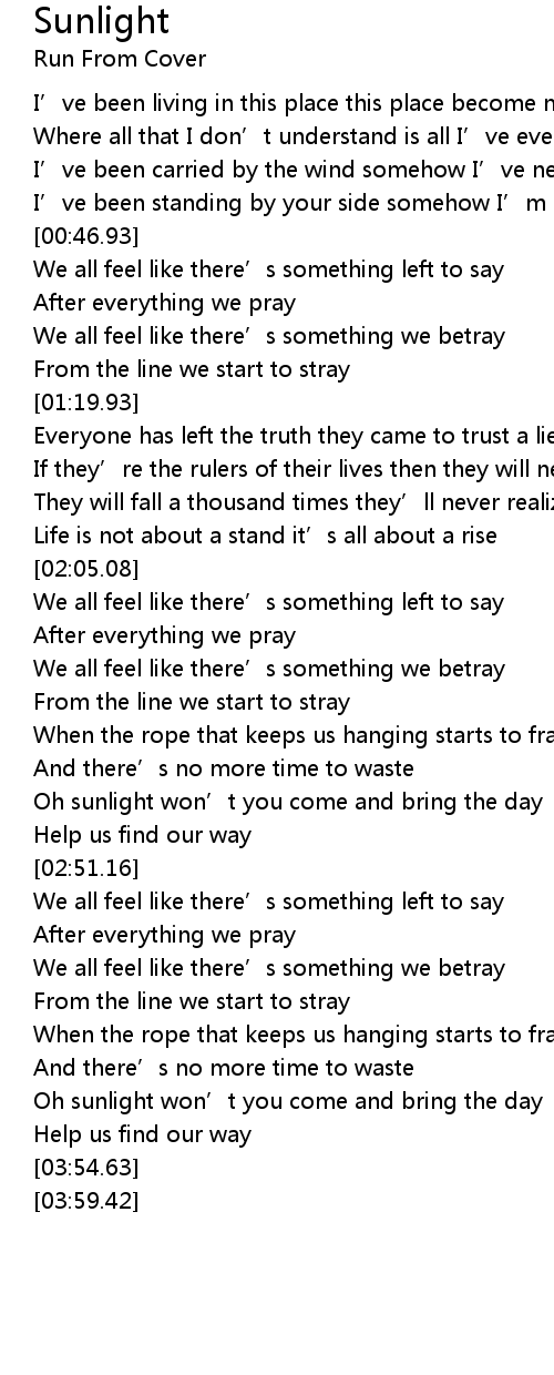 | [03:42.53] | Oh sunlight won’t you come and bring the day |