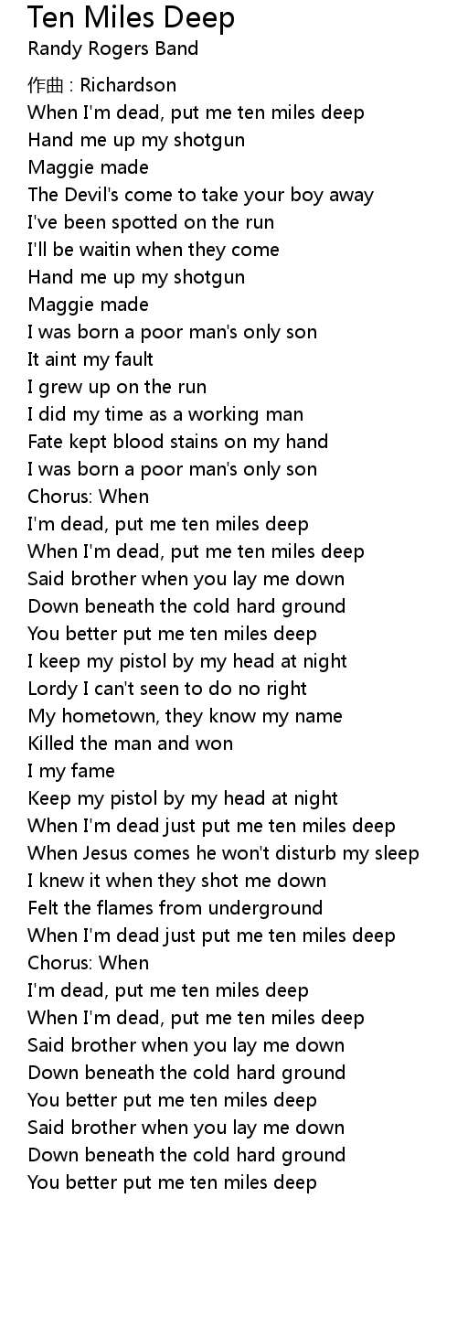 | I' m dead, put me ten miles deep | |