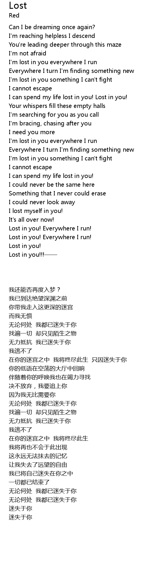 | [04:16.73] | Lost in you! Everywhere I run! |