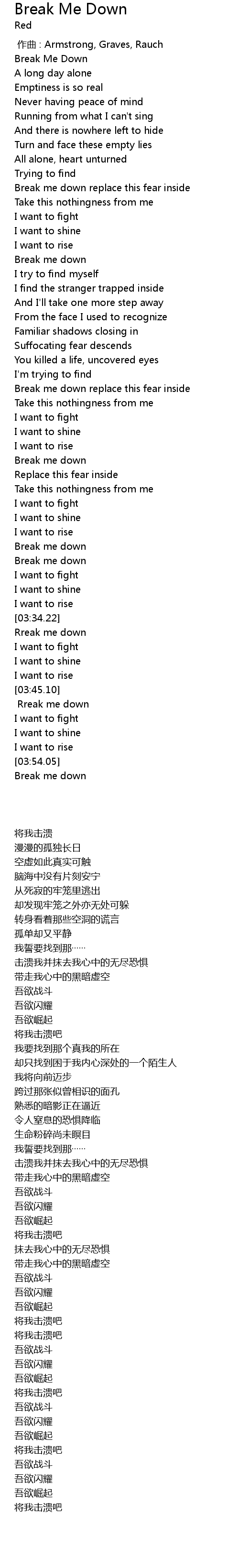 | [03:34.60] | Rreak me down |