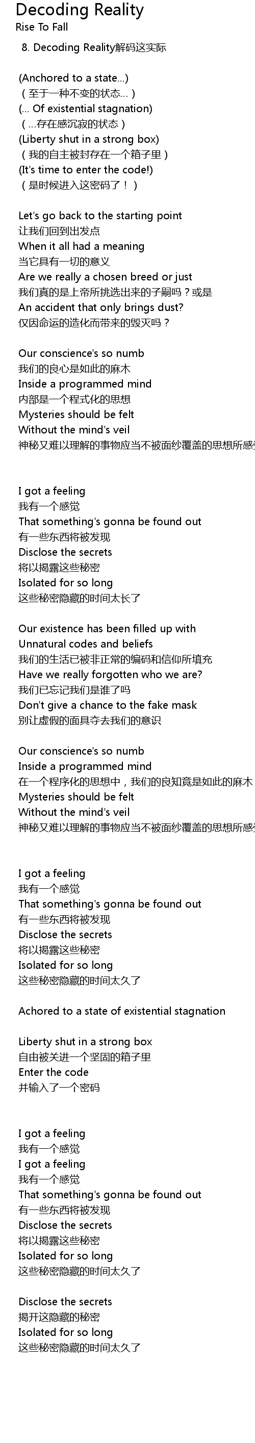 | 8. Decoding Reality jiě mǎ zhè shí jì | |