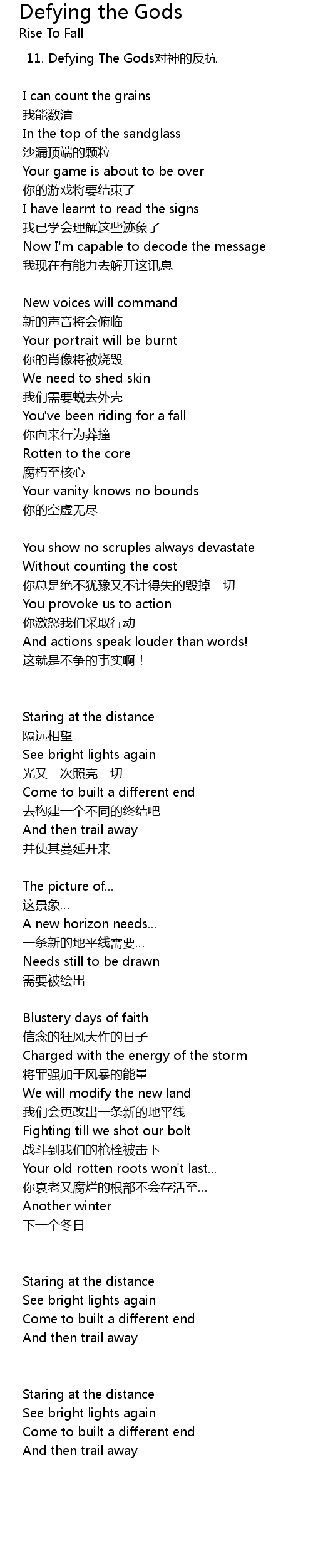 | 歌曲 | Defying the Gods |