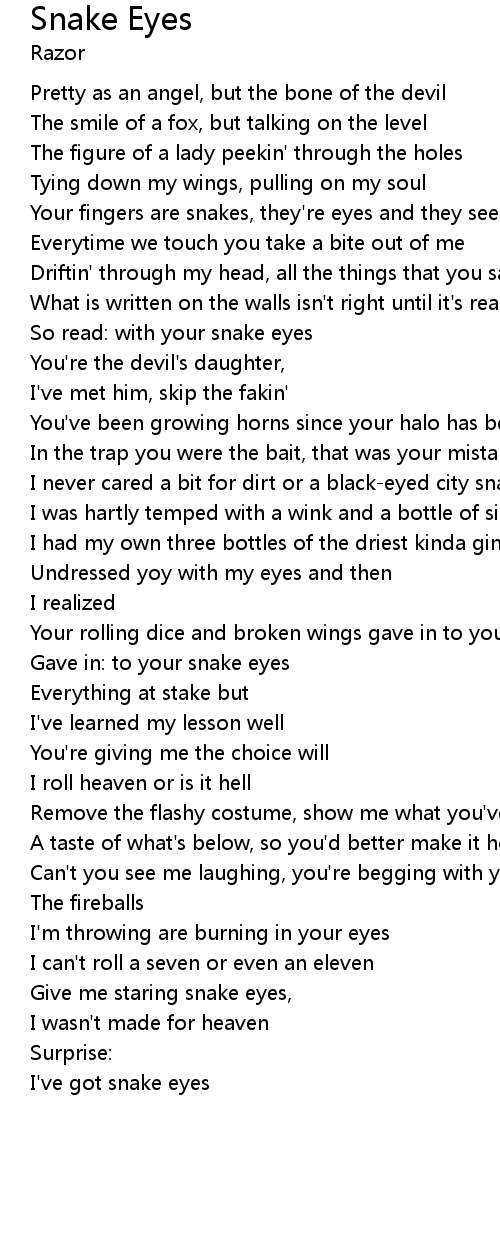 | Gave in: to your snake eyes | |