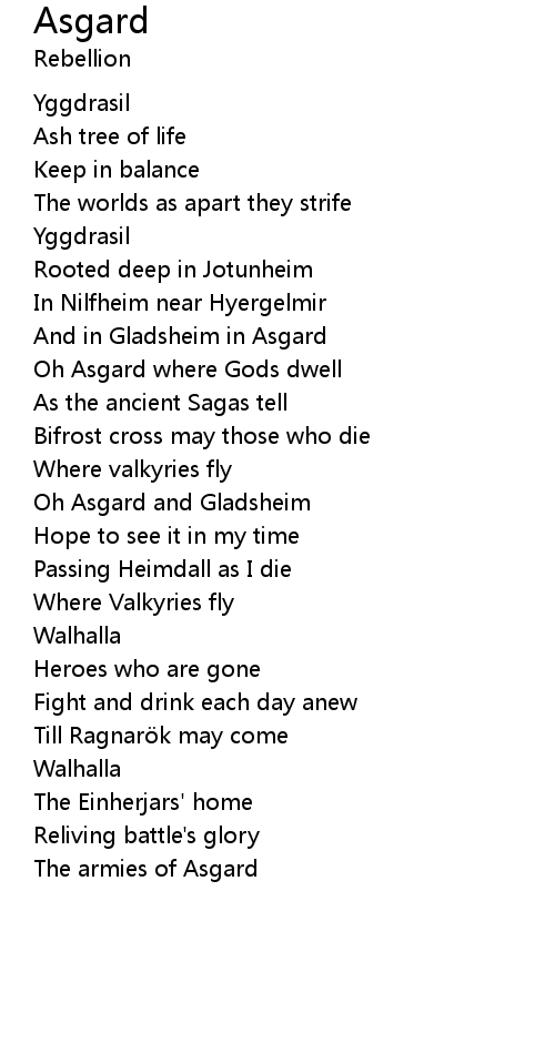 | Oh Asgard where Gods dwell | |
