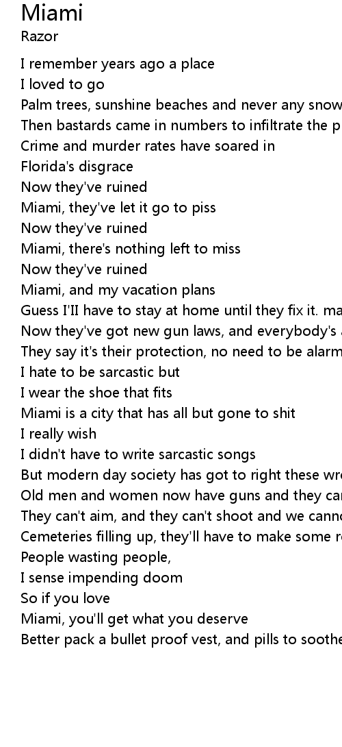 | Miami, there's nothing left to miss | |