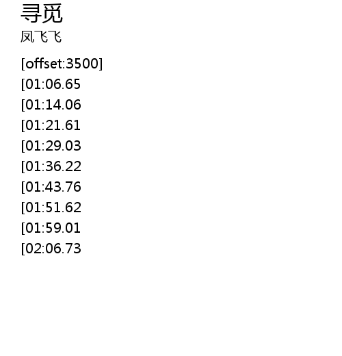 | [02:10.61][01:06.65][00:04.00] | 寻寻又觅觅 |